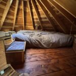 Electricity, water. Full sized bed in a loft- sleeps 2 in a 120 sq ft octagonal cedar log cabin. Composting toilet close by. Ample peace and quiet; a great place for relaxation on this permaculture land project. Book your stay today and receive directions and more information.