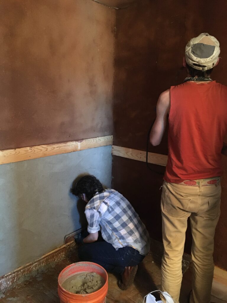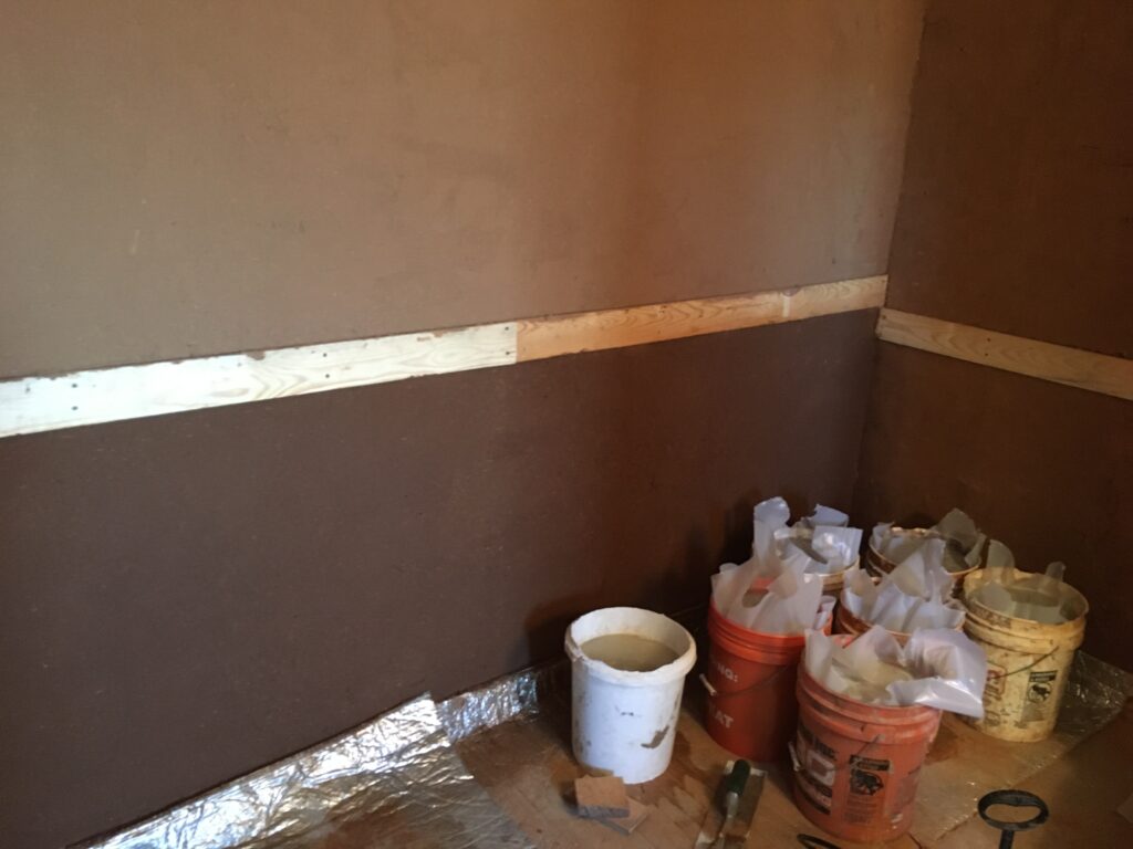 Slip Straw Sauna Here is the slip straw (also known as light straw clay) with earthen plaster sauna at Mountain Jewel. interior plaster in the sauna